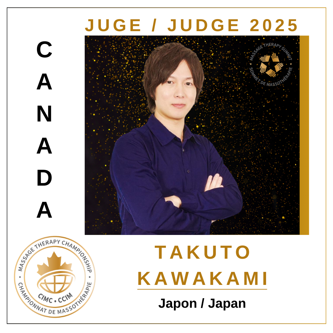 Takuto Kawakami est également à l’origine de plusieurs compétitions majeures, ayant organisé le Championnat de Massage du Japon 2023, ainsi que le Championnat de Massage d’Asie 2024 et le Championnat du Monde de Massage en Ligne 2024. Il a également reçu le Prix du Meilleur Championnat National de Massage 2023.